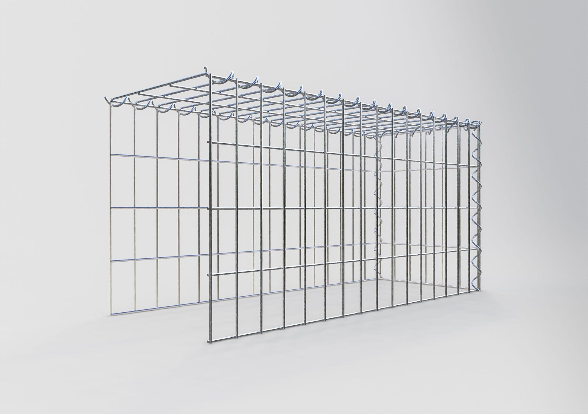Questo gabbione non ha una griglia frontale e di base. Ciò consente al gabbione di crescere sia in lunghezza che in altezza. Si prega di notare che il