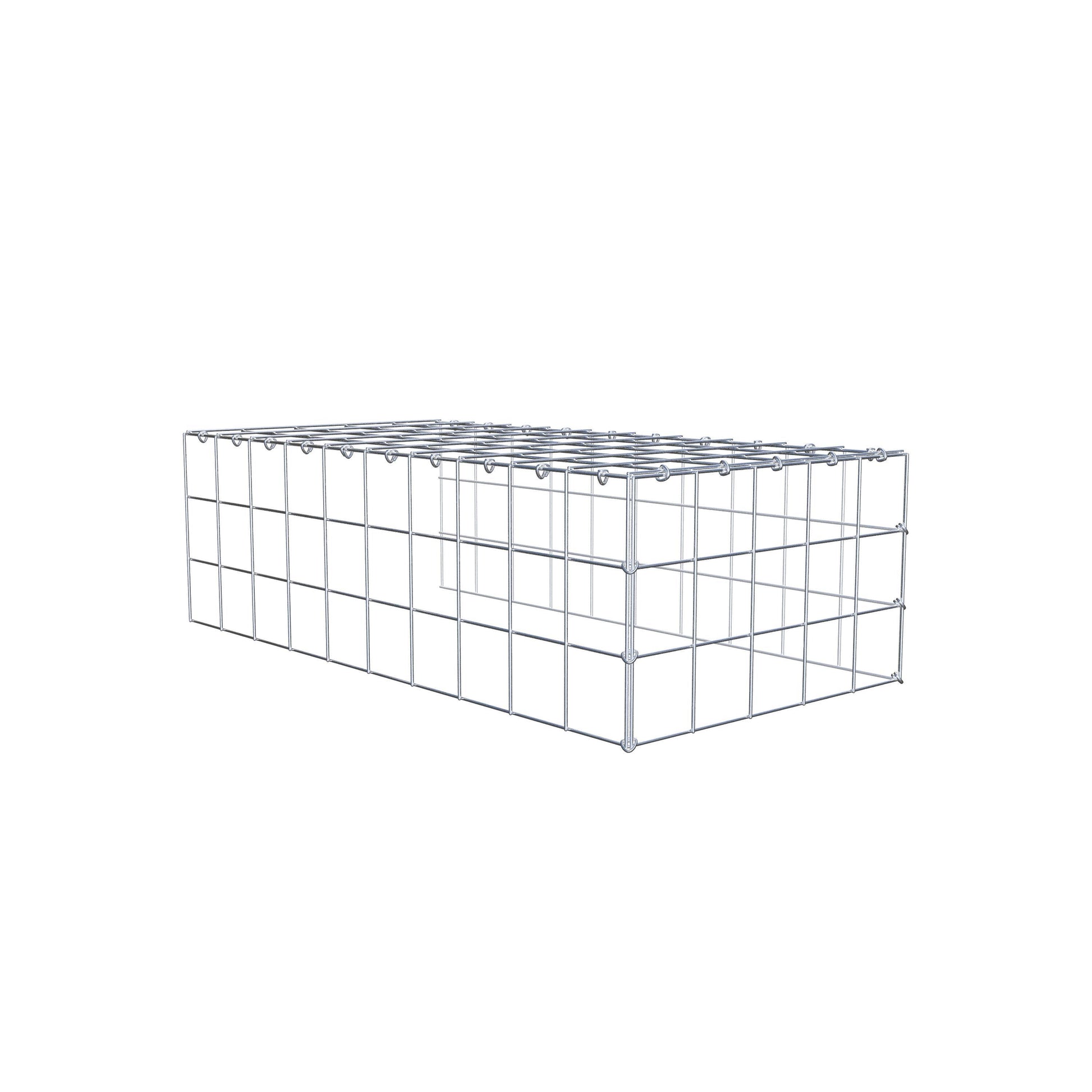 - Hinweis: kein eigenes Bodengitter und kein eigenes Stirngitter – die Verbindung erfolgt über das Deckelgitter und den Verschluss der unteren Gabione sowie den Verschluss der seitlichen Gabione.