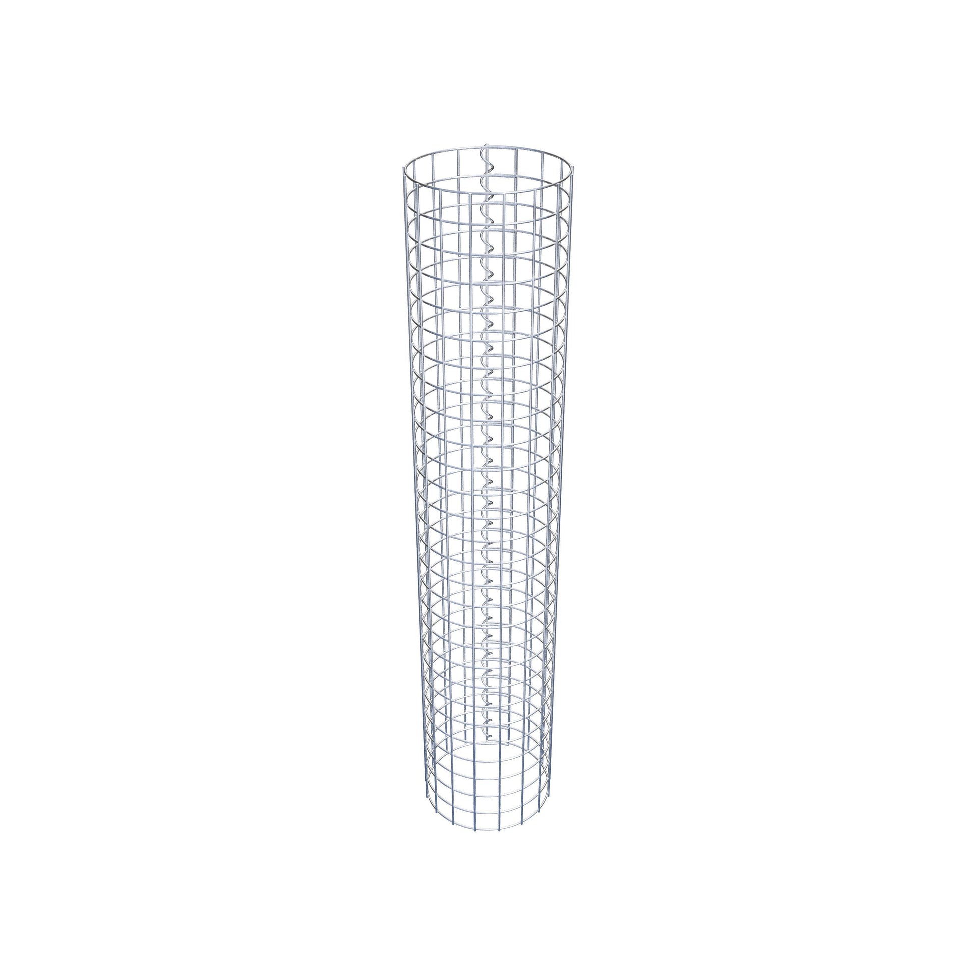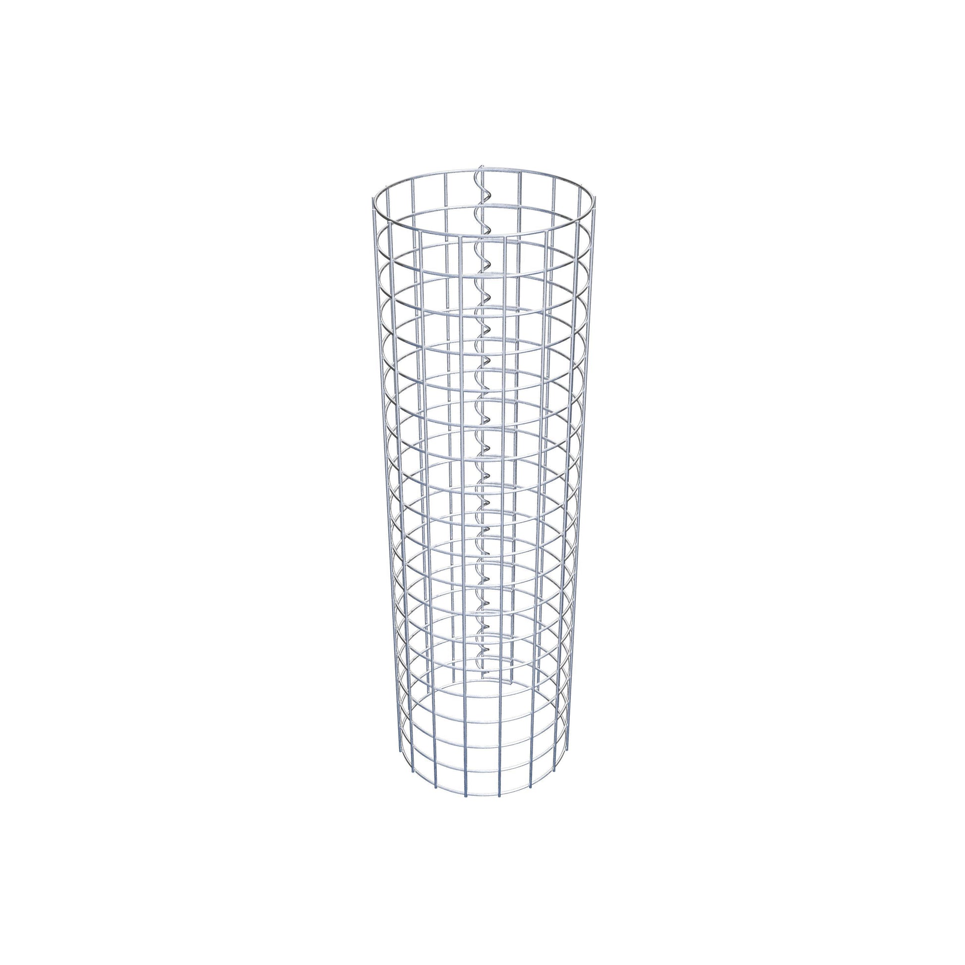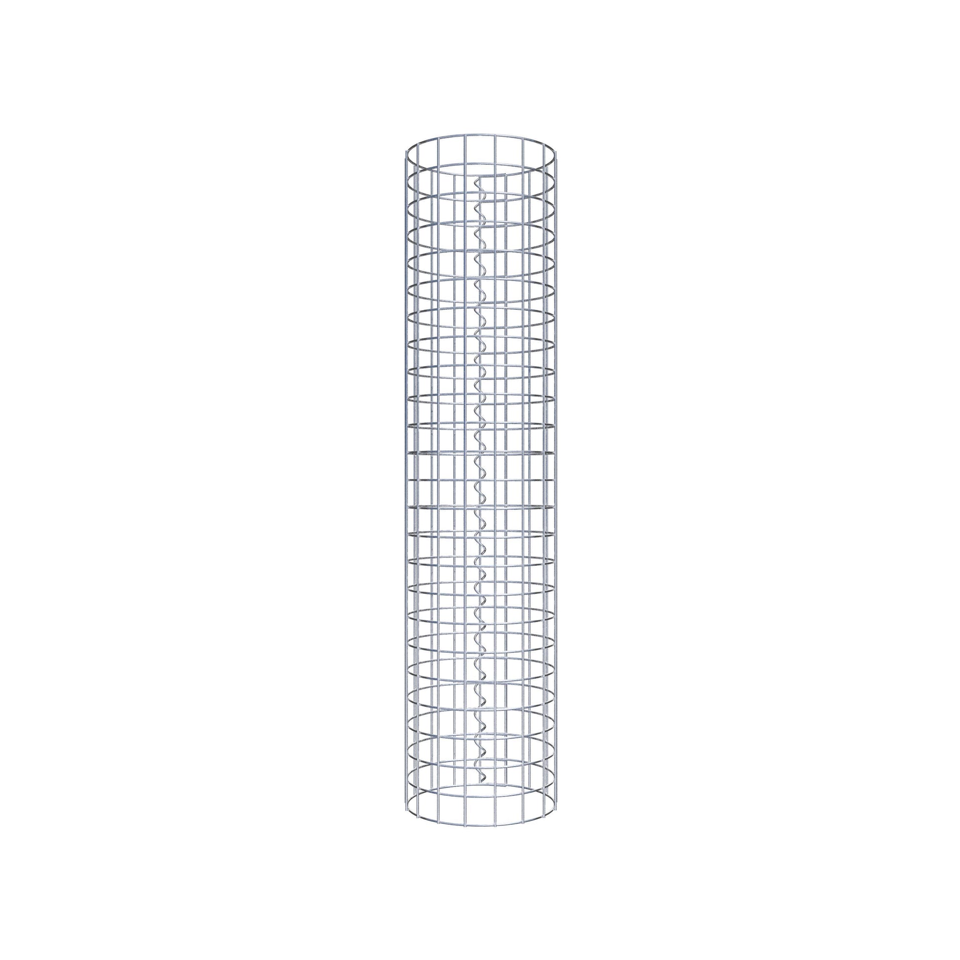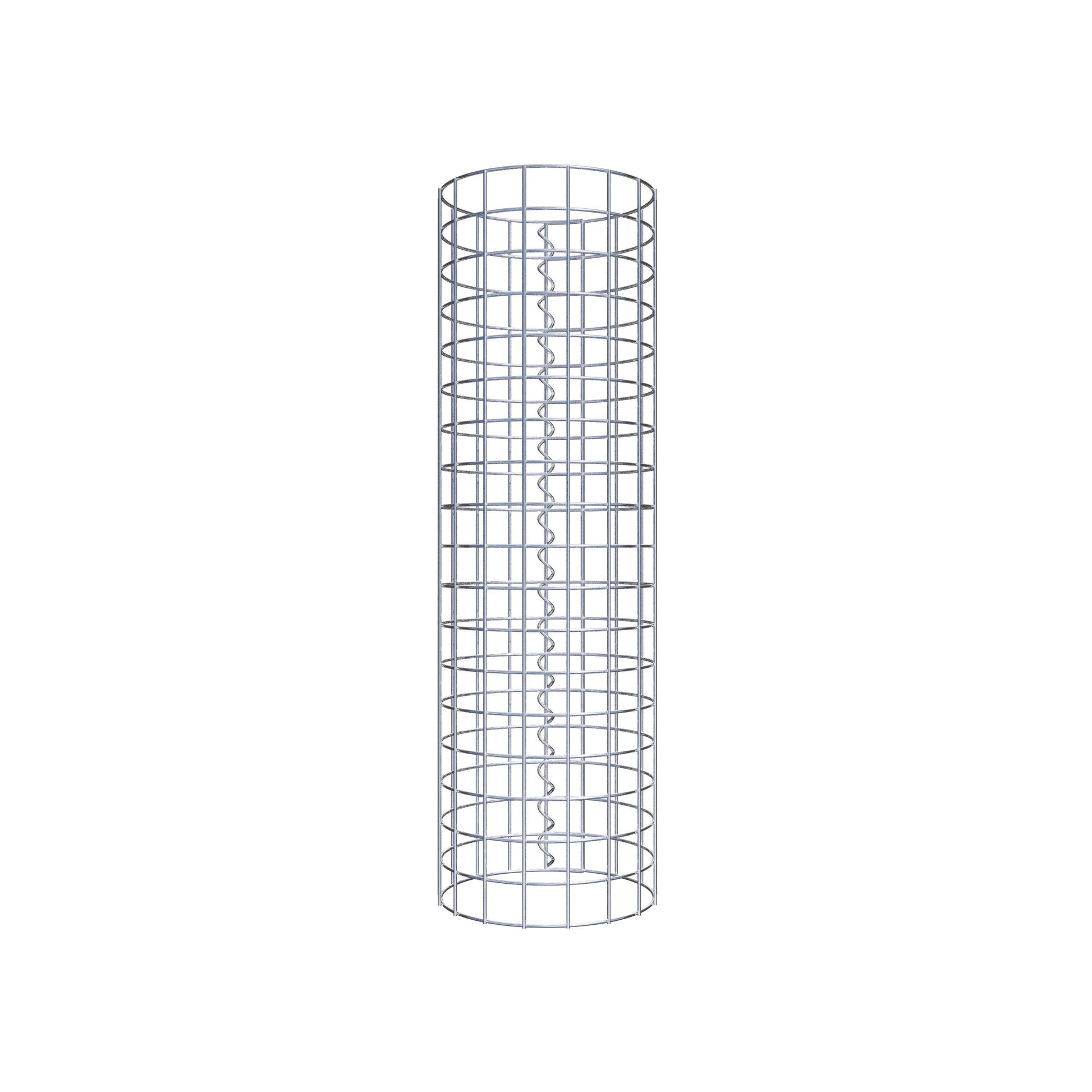 Der seitliche Verschluss erfolgt an der einzigen Überlappungsstelle des Gitters mit einer Spirale, die einfach eingedreht und zusammengedrückt wird. So entsteht eine saubere, sichere und dauerhafte Verbindung. Alternativ kann die Gabionensäule auch mit Klammern verschlossen werden, die separat erhältlich sind. Die Säulen sind nach oben und unten offen – ein Bodengitter oder Deckel ist nicht erforderlich und daher nicht im Lieferumfang enthalten.