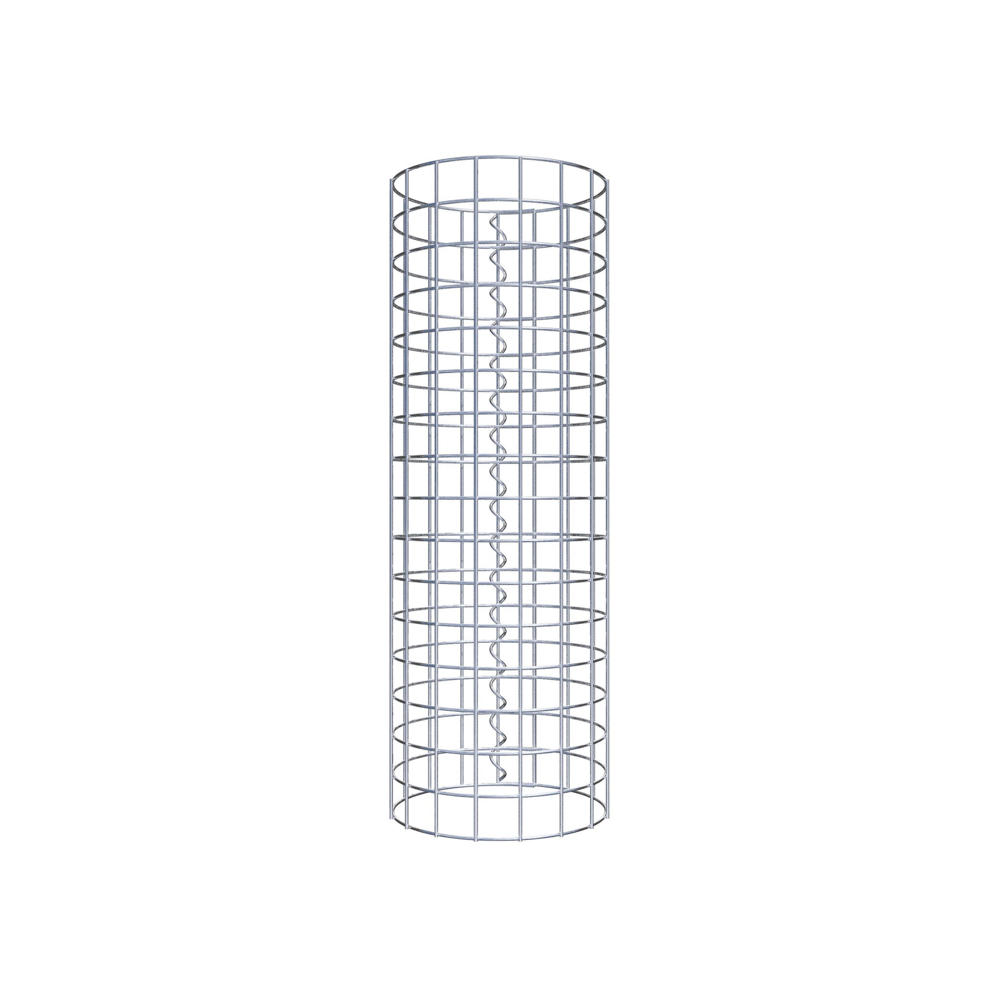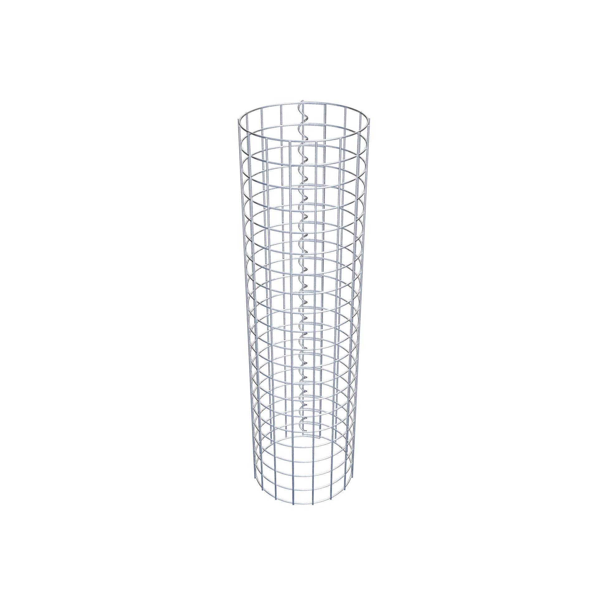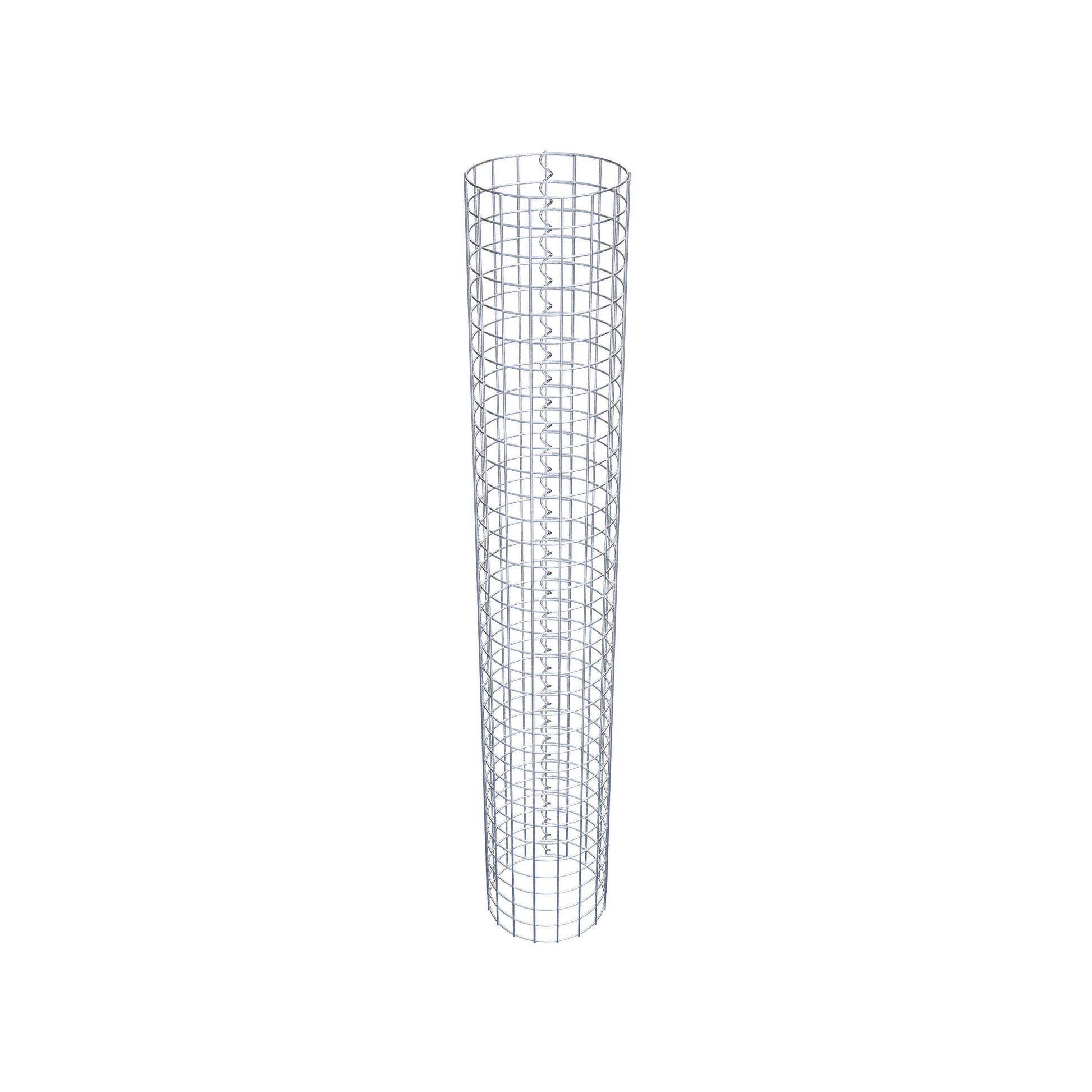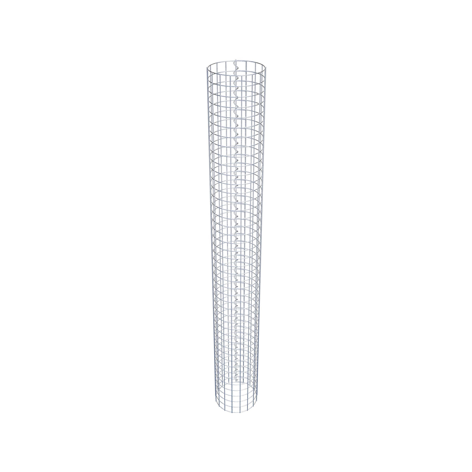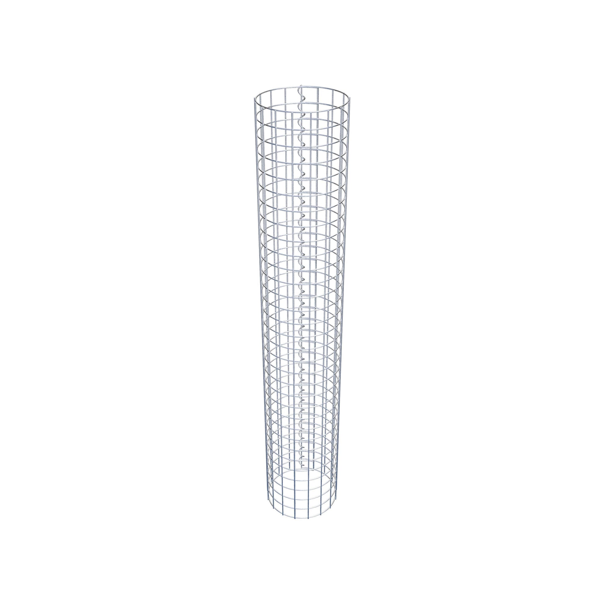 Der seitliche Verschluss erfolgt an der einzigen Überlappungsstelle des Gitters mit einer Spirale, die einfach eingedreht und zusammengedrückt wird. So entsteht eine saubere, sichere und dauerhafte Verbindung. Alternativ kann die Gabionensäule auch mit Klammern verschlossen werden, die separat erhältlich sind. Die Säulen sind nach oben und unten offen – ein Bodengitter oder Deckel ist nicht erforderlich und daher nicht im Lieferumfang enthalten.