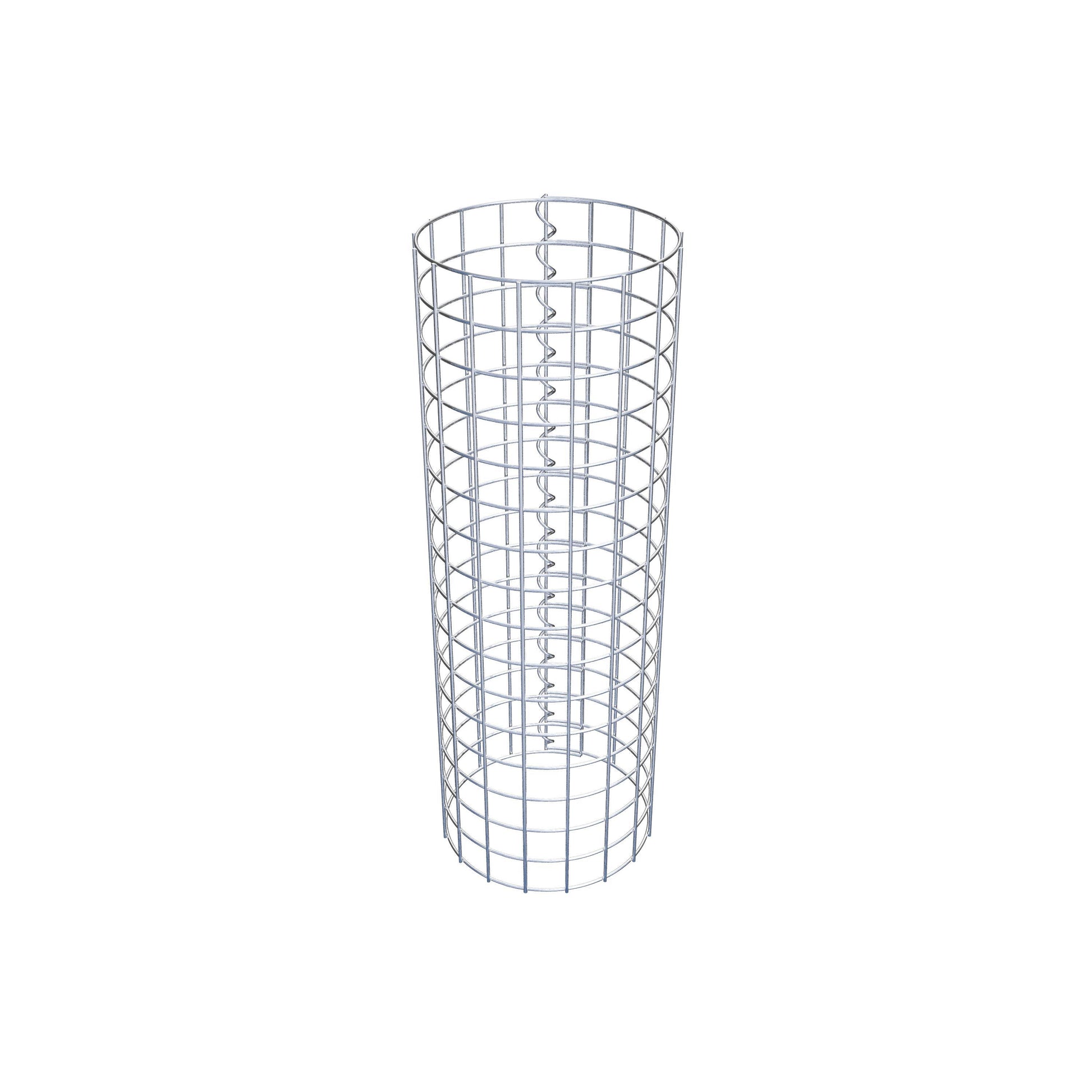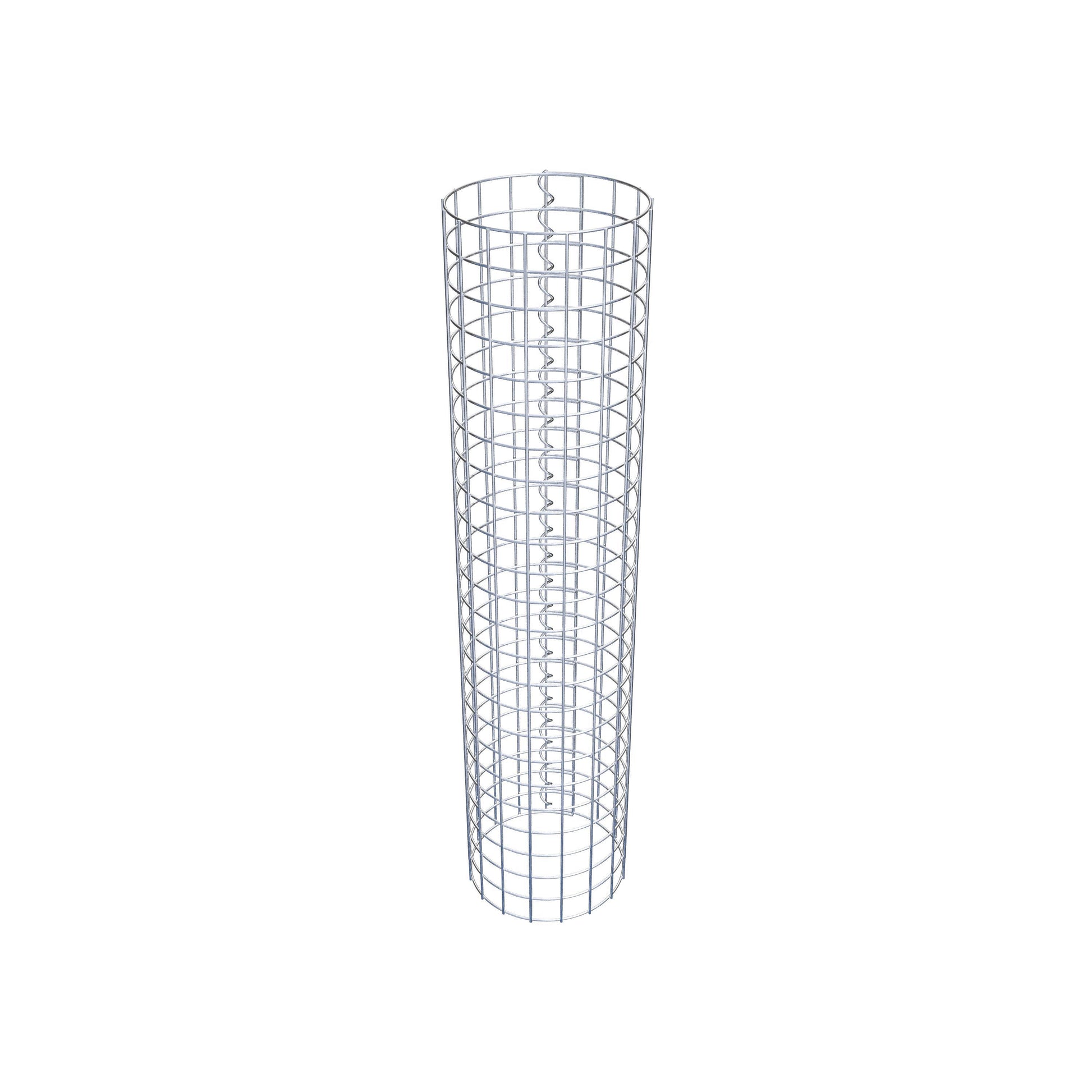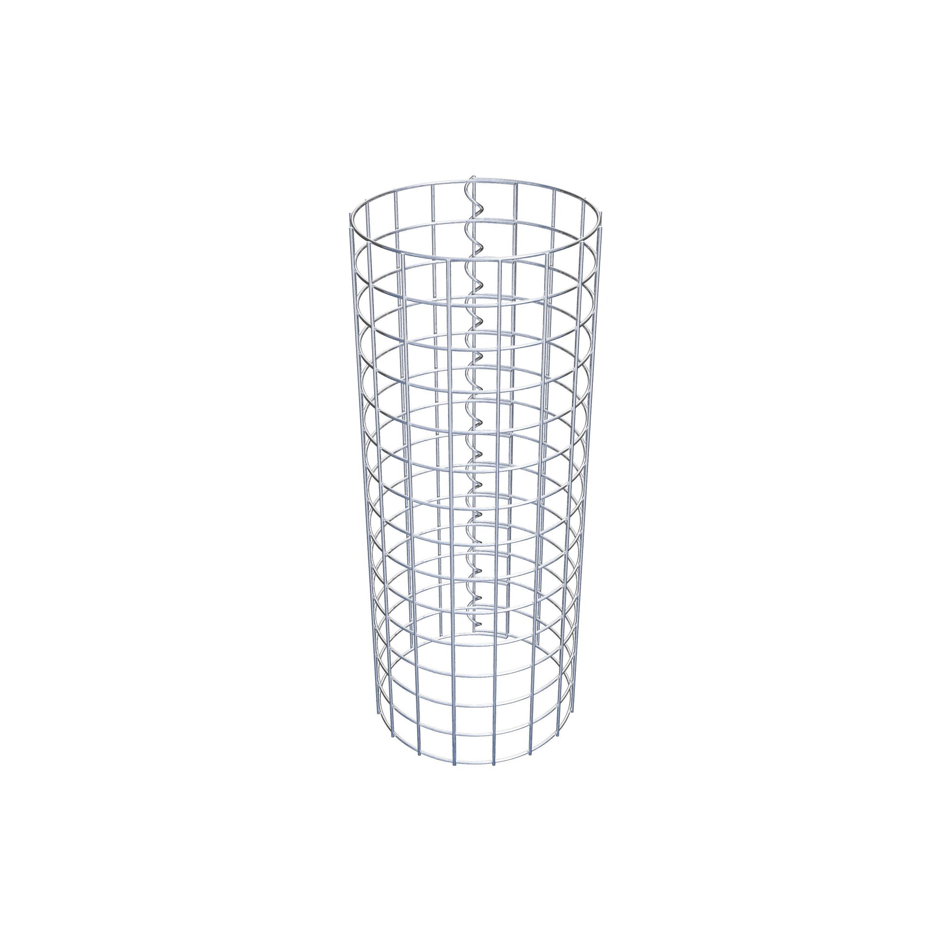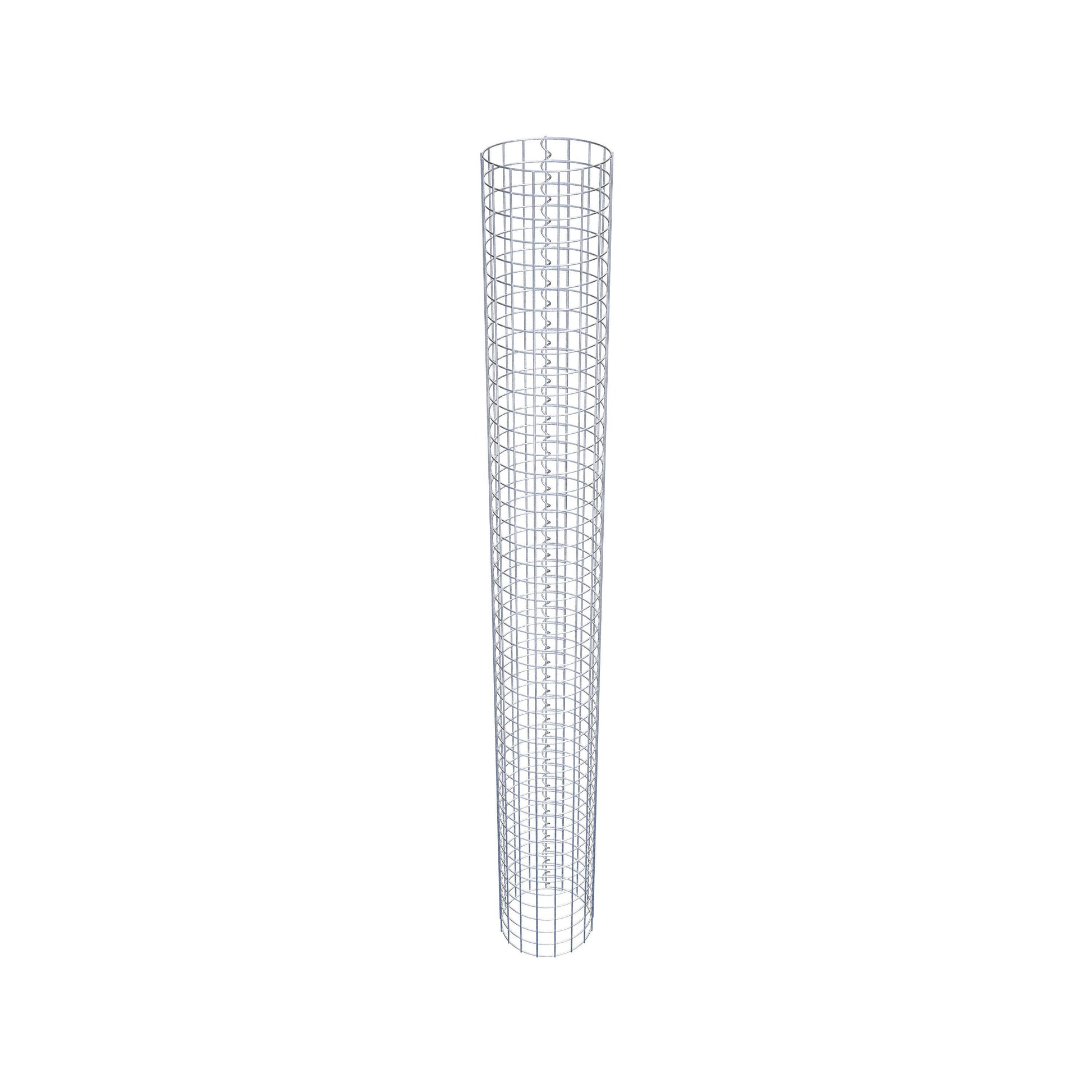 Der seitliche Verschluss erfolgt an der einzigen Überlappungsstelle des Gitters mit einer Spirale, die einfach eingedreht und zusammengedrückt wird. So entsteht eine saubere, sichere und dauerhafte Verbindung. Alternativ kann die Gabionensäule auch mit Klammern verschlossen werden, die separat erhältlich sind. Die Säulen sind nach oben und unten offen – ein Bodengitter oder Deckel ist nicht erforderlich und daher nicht im Lieferumfang enthalten.