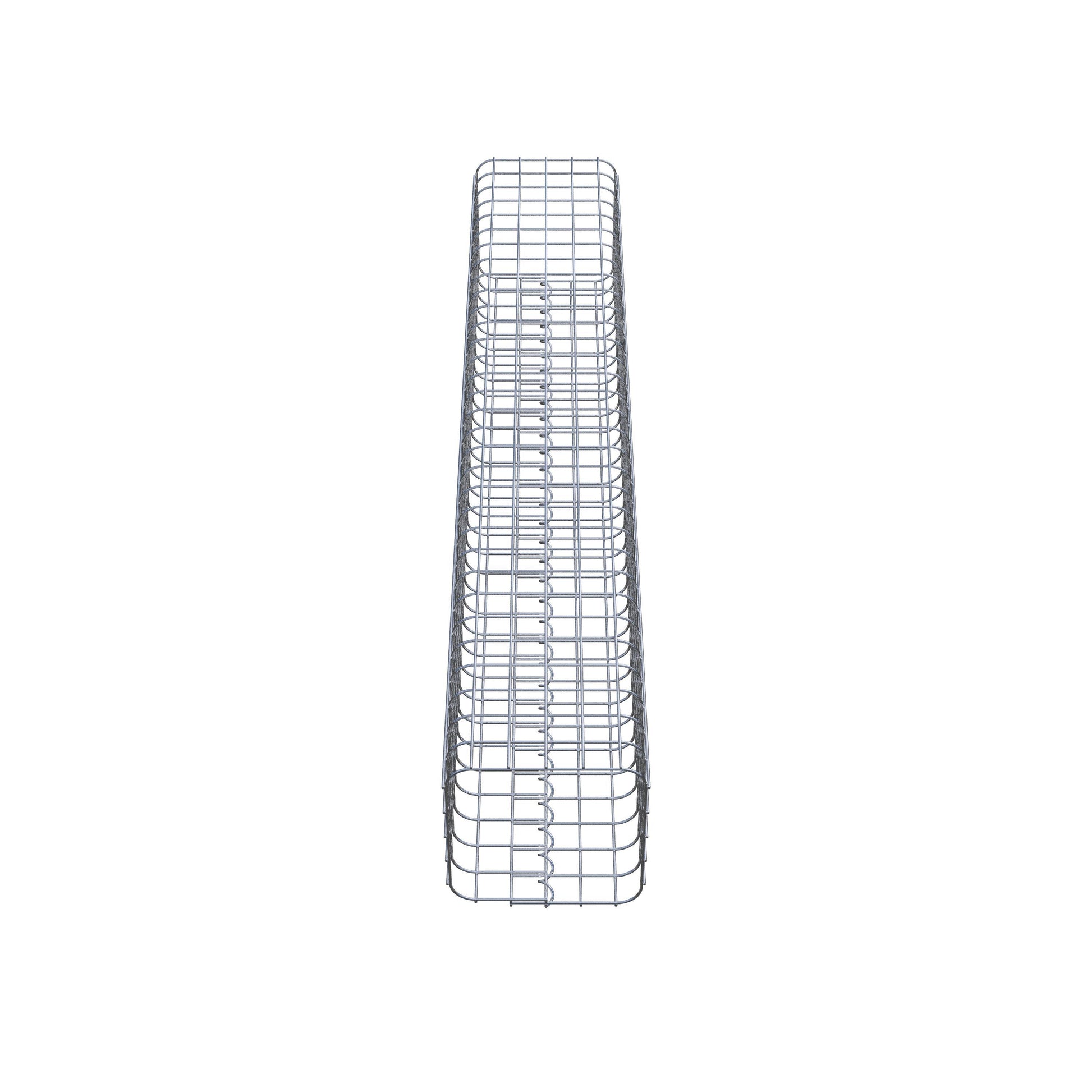 Der seitliche Verschluss erfolgt an der einzigen Überlappungsstelle des Gitters mit einer Spirale, die einfach eingedreht und zusammengedrückt wird. So entsteht eine saubere, sichere und dauerhafte Verbindung. Alternativ kann die Gabionensäule auch mit Klammern verschlossen werden, die separat erhältlich sind. Die Säulen sind nach oben und unten offen – ein Bodengitter oder Deckel ist nicht erforderlich und daher nicht im Lieferumfang enthalten. Bei Bedarf kann ein Deckel zusätzlich erworben werden.