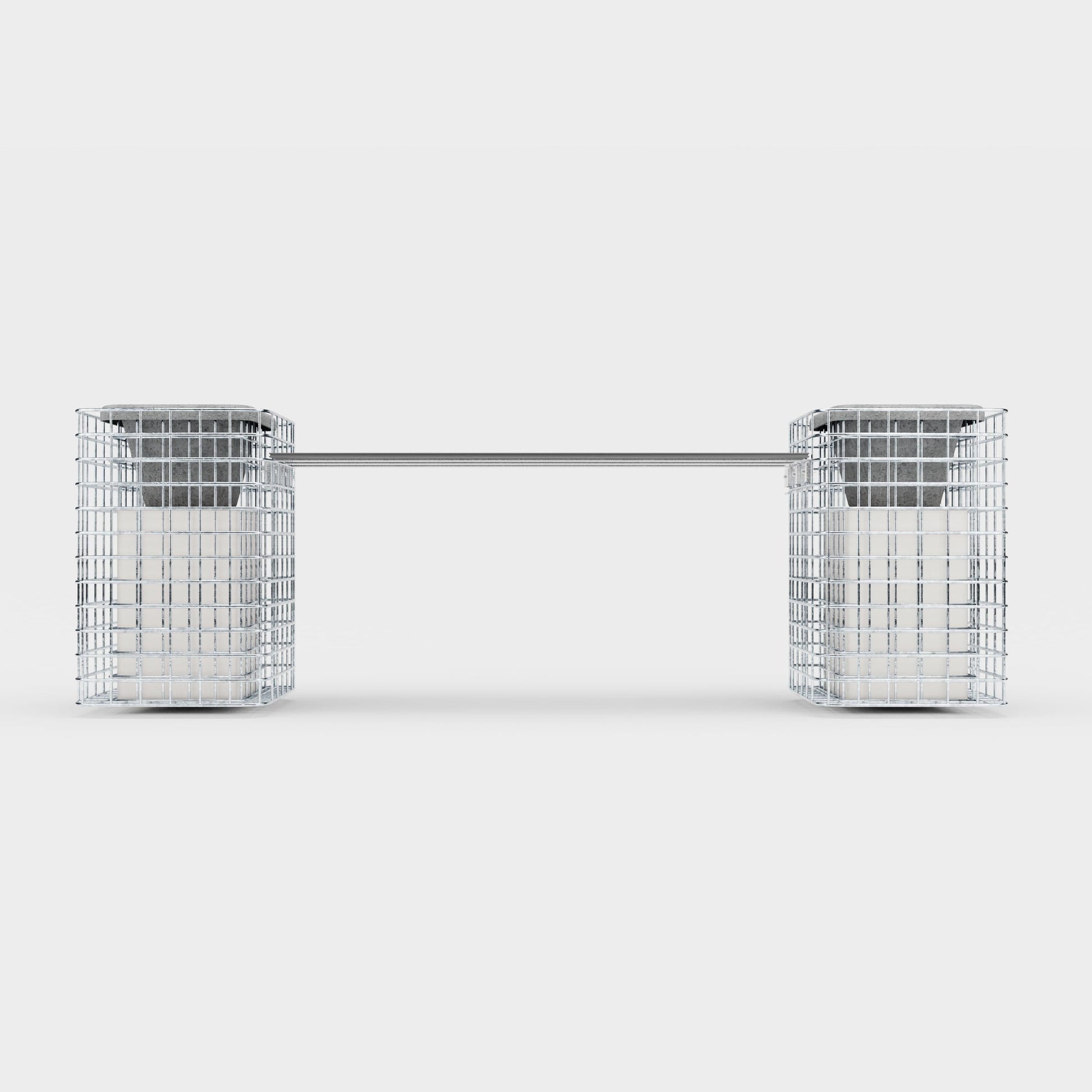 Sie wünschen mehr Beinfreiheit? Unsere Bänke können auch zwischen zwei Körben montiert werden.