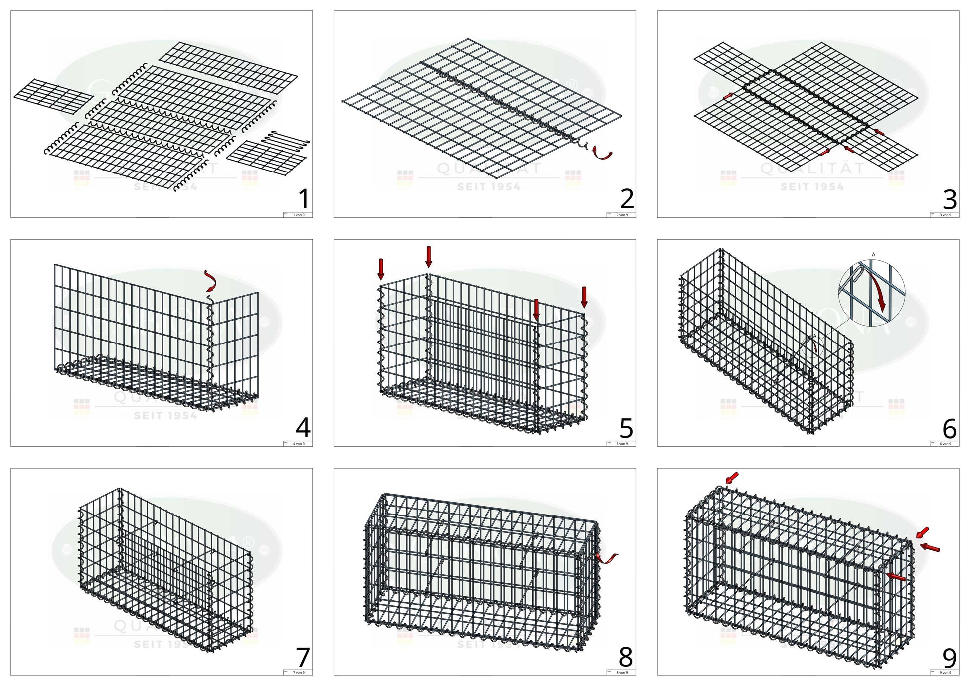 O escopo de entrega inclui 12 grades para cada gabião, espirais para conexão e espaçadores para estabilizar a forma .