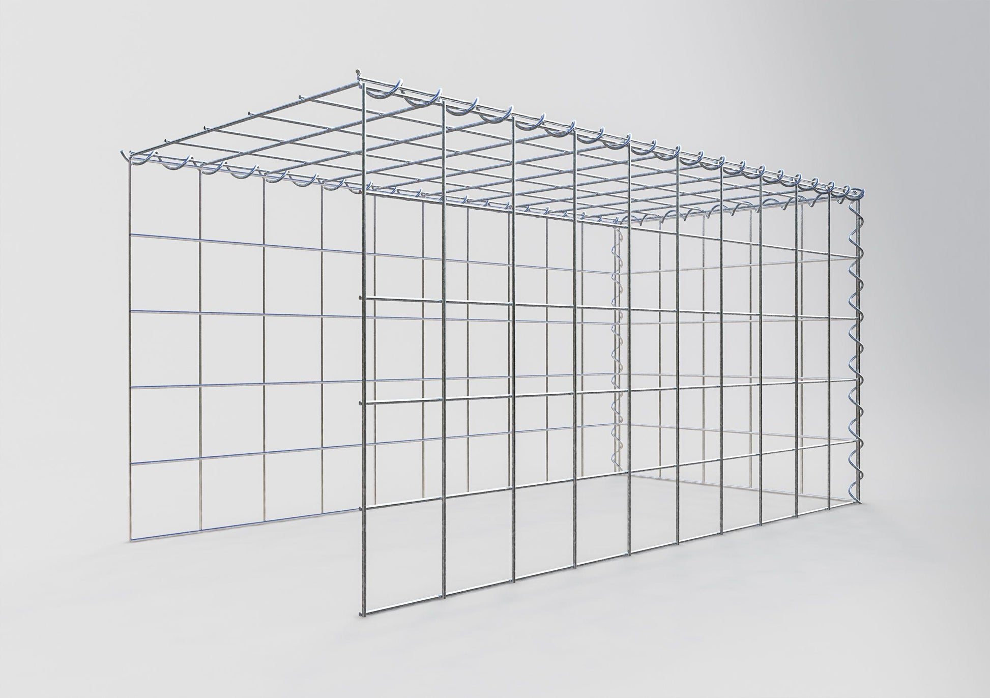 Este gabião não tem grade frontal e inferior. Isso permite que seu gabião cresça tanto em comprimento quanto em altura. Observe que o