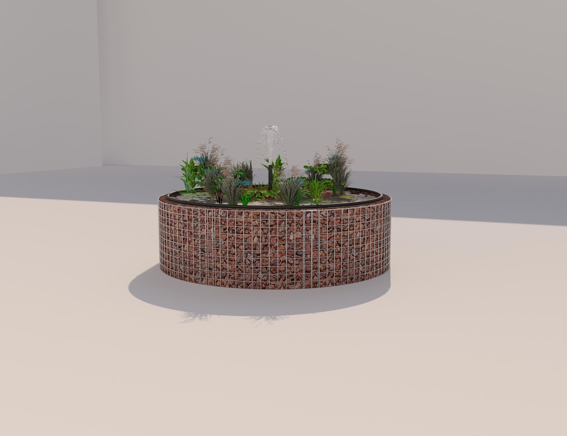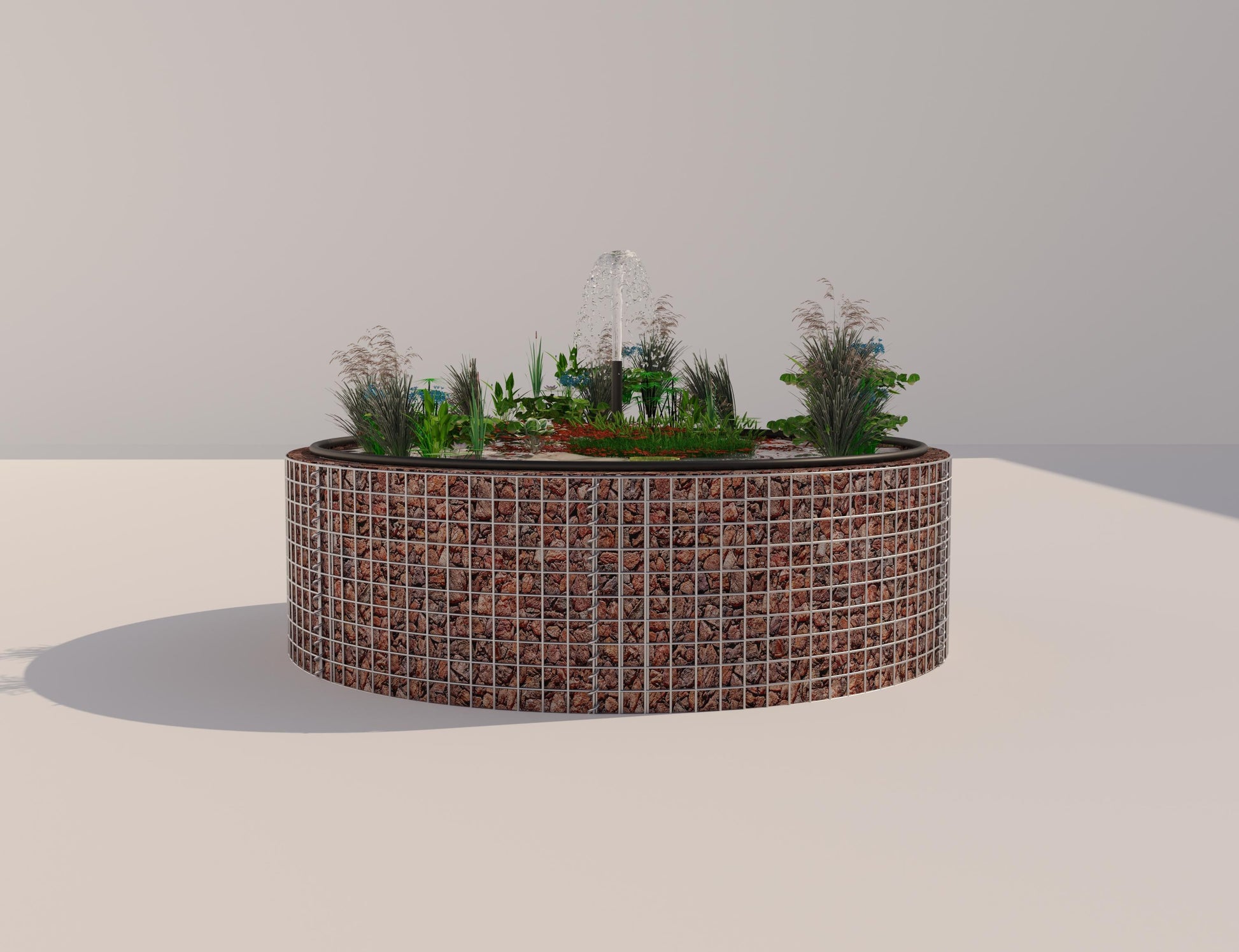 Lago elevado em gabião - Design redondo elegante com velo e revestimento do lago